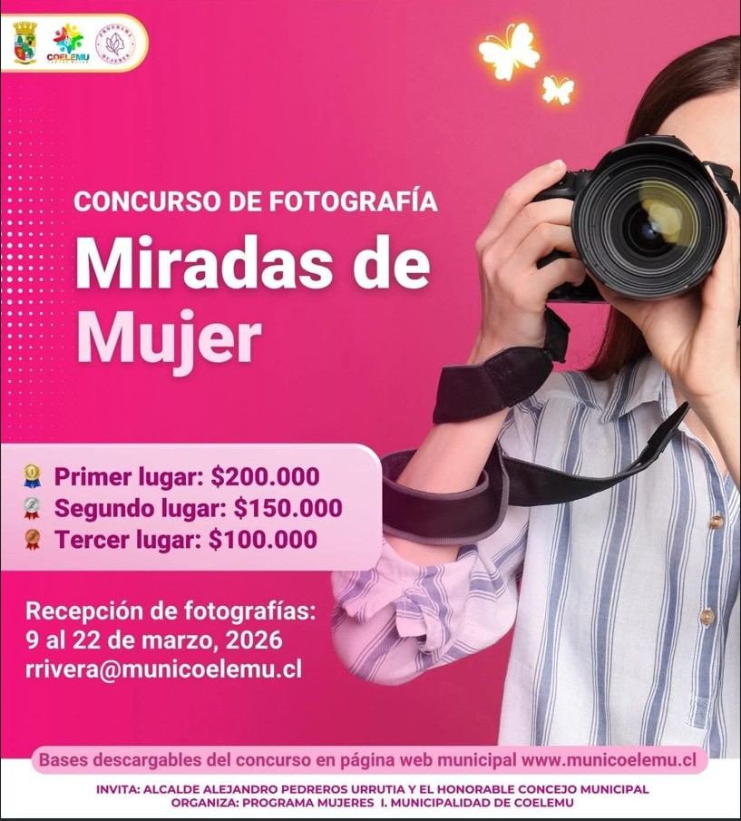 Invitamos a todas las mujeres de nuestra comuna a ser parte de este hermoso concurso fotográfico, una instancia pensada para expresar, visibilizar y reconocer la identidad, la diversidad y el valioso aporte de la mujer coelemana. A través de la fotografía queremos rescatar miradas, historias, recuerdos y momentos que reflejen la esencia, la fuerza y la belleza de nuestras mujeres.