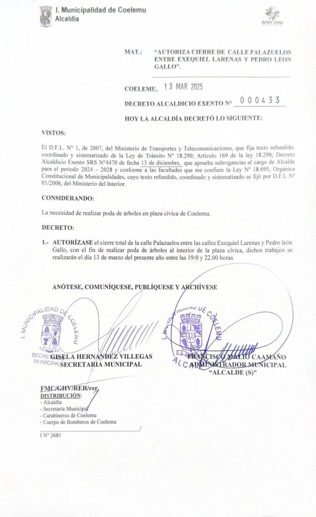 jueves 13, marzo, 2025 Noticias CIERRE DE CALLE Autoriza cierra de calle Palazuelos entre exequiel larenas y Pedro Leon Gallo